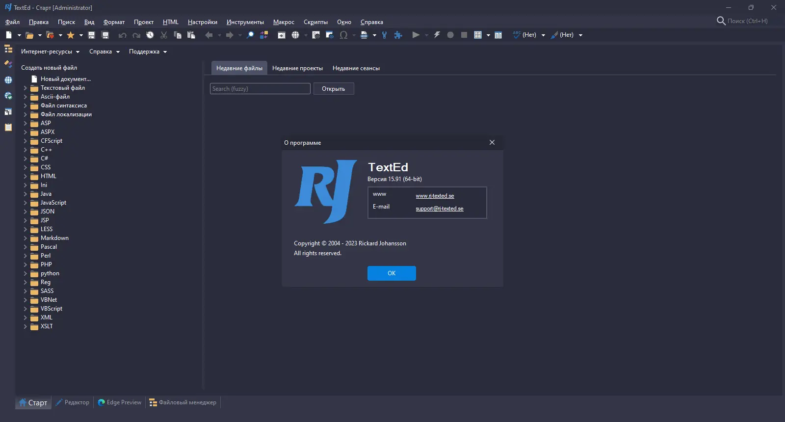 RJ TextEd — это многофункциональный текстовый редактор, ориентированный на разработчиков и веб-мастеров, с поддержкой множества языков программирования, включая HTML, CSS, JavaScript и PHP. Программа предлагает расширенные инструменты редактирования кода, включая подсветку синтаксиса, автозавершение, работу с кодировками и встроенный FTP-клиент. Её интерфейс сочетает в себе гибкость и функциональность, обеспечивая комфортную работу с текстовыми и бинарными файлами.