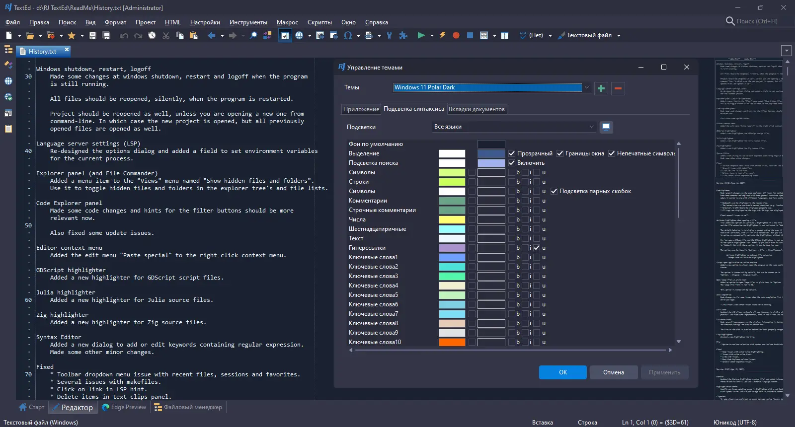 RJ TextEd сочетает в себе мощные функции редактора кода с удобством использования, что делает его привлекательным выбором для веб-разработчиков. Программа оптимизирована для работы с большими проектами, поддерживает обработку как текстовых, так и бинарных данных. Встроенные инструменты, такие как подбор цветов, таблица символов и редактор синтаксиса, расширяют её функциональность без необходимости подключения сторонних приложений.