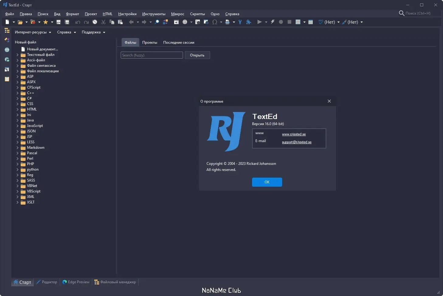 RJ TextEd — это многофункциональный текстовый редактор, ориентированный на разработчиков и веб-мастеров, с поддержкой синтаксиса HTML, CSS, JavaScript, PHP и других языков программирования. Программа сочетает в себе удобные инструменты для редактирования кода, включая подсветку, автозавершение, работу с кодировками и встроенный FTP-клиент, обеспечивая высокую производительность при работе с текстовыми и бинарными файлами.