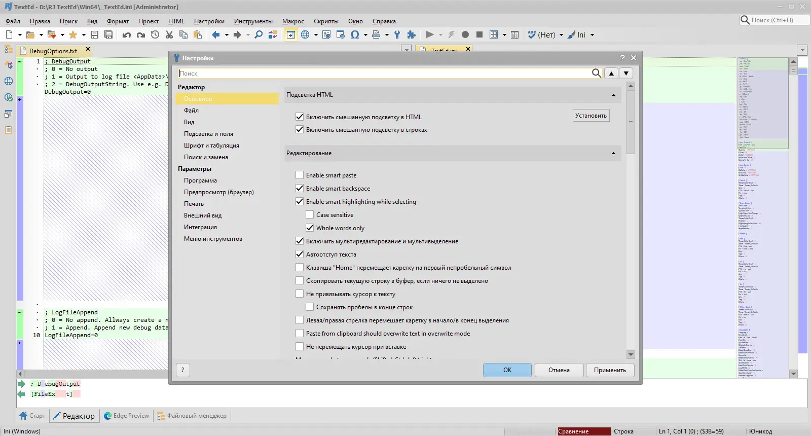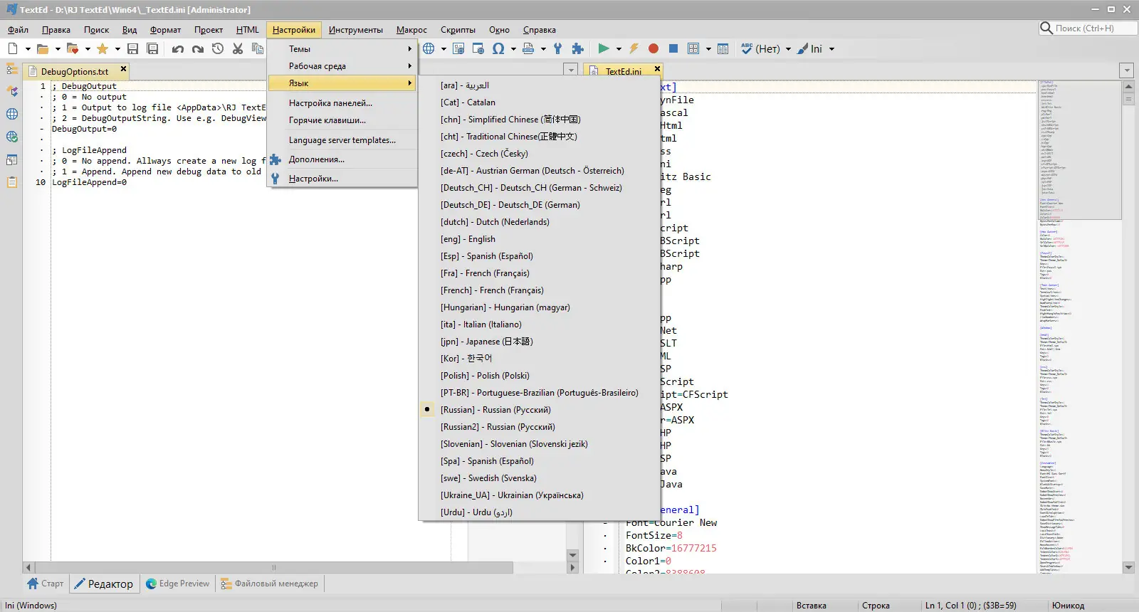 - Редактор поддерживает кодировки ANSI, UTF-8, Unicode и Unicode BE, что позволяет корректно обрабатывать файлы из различных систем и платформ.