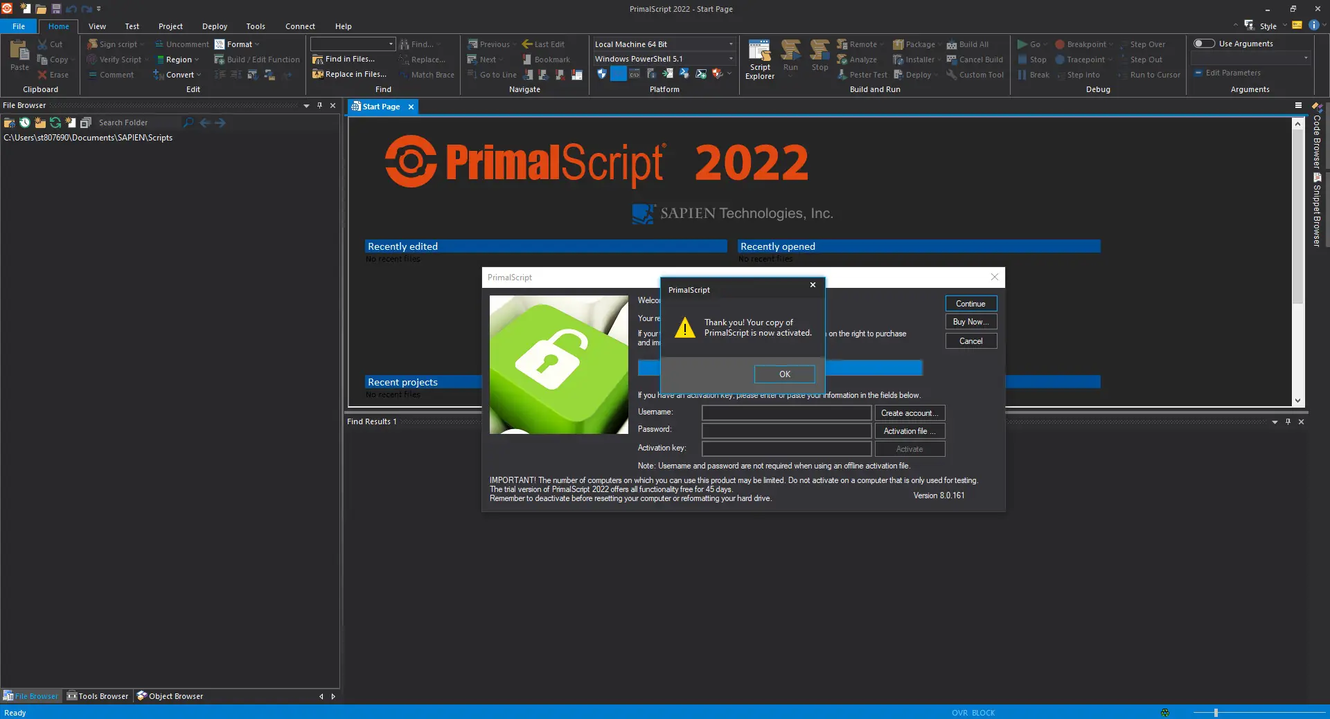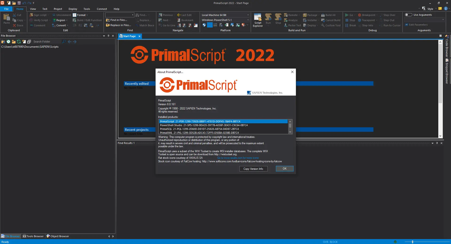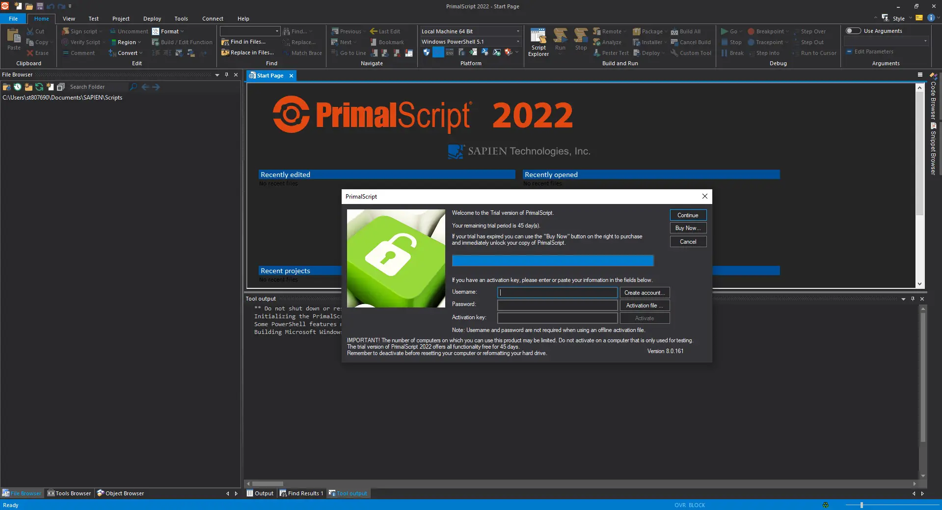 SAPIEN PrimalScript доступен для установки на различных версиях операционной системы Windows. Программа совместима с 32- и 64-битными системами, включая Windows 7, 8.1, 10 и 11. Благодаря гибкой системе лицензирования, пользователи могут активировать приложение с помощью сгенерированного файла. После установки и активации становятся доступны все функции среды разработки, включая интеграцию с консолями, удалённую отладку и автоматизированное создание проектов. Регулярные обновления обеспечивают совместимость с новыми версиями скриптовых движков и расширение функциональности.