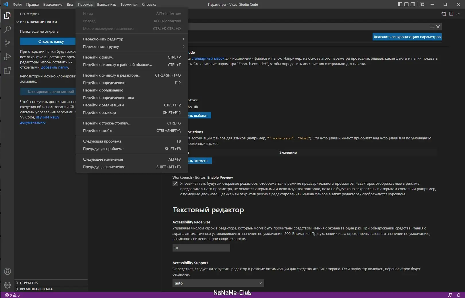 - Поддержка расширений из VS Code Marketplace, расширяющих функциональность редактора.