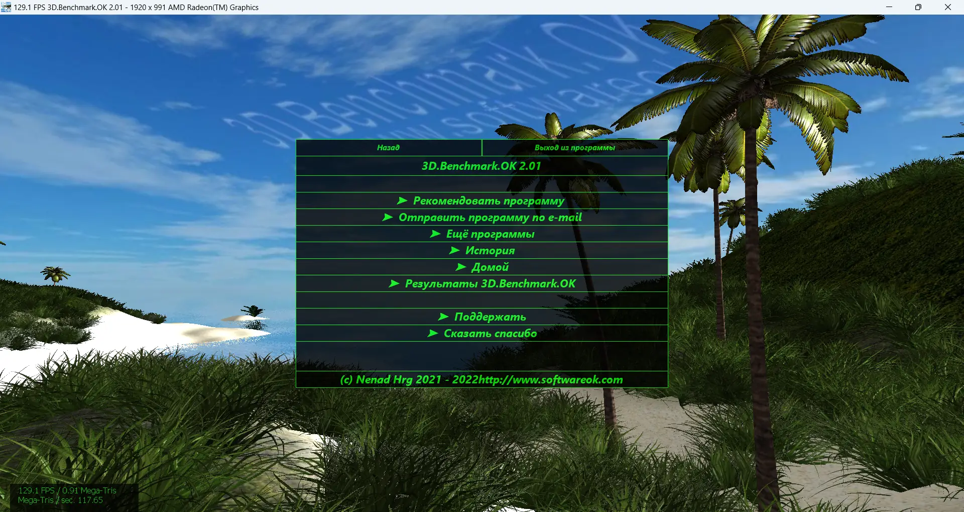 Программа 3D Benchmark OK разработана для быстрой и наглядной оценки возможностей графического адаптера в условиях реальной 3D-нагрузки. В отличие от более громоздких аналогов, она запускается мгновенно и не требует сложной настройки. Тест длится всего 65 секунд, но за это время симулируются сложные визуальные эффекты: преломление света, динамические отражения, водные поверхности и анимация ветра в сцене. Это позволяет выявить не только общую производительность, но и потенциальные проблемы с визуализацией и плавностью изображения.