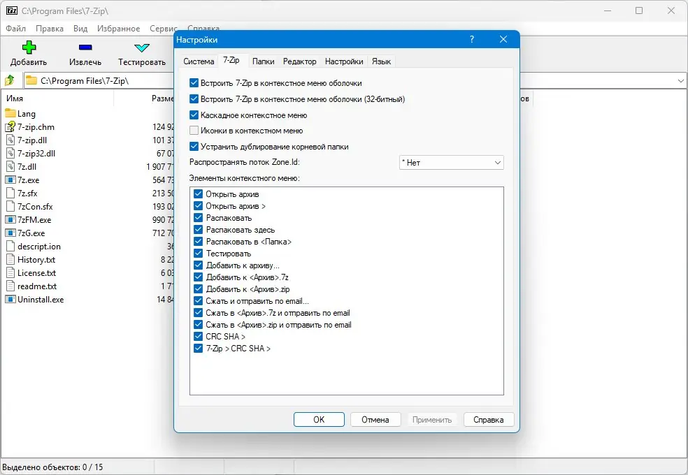 Работа с 7-Zip