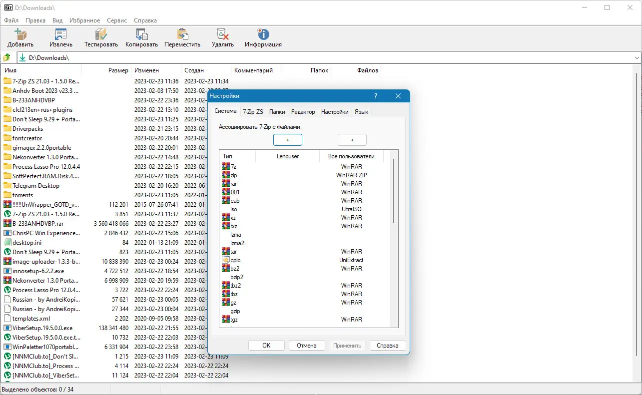 - Совместимость с широким спектром архивных форматов, включая 7z, ZIP, RAR, TAR, ISO и многие другие.