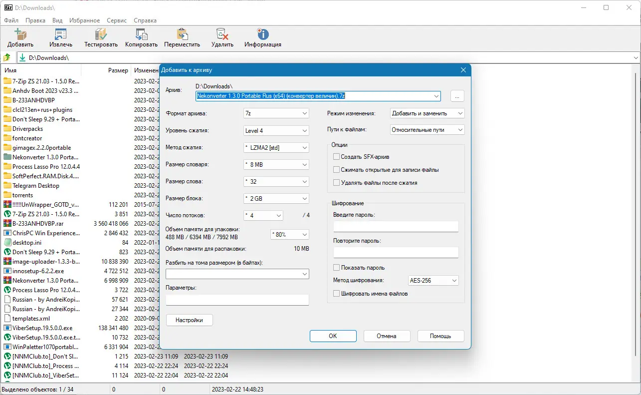 - Высокий уровень шифрования данных в архивах 7z и ZIP с использованием AES-256.