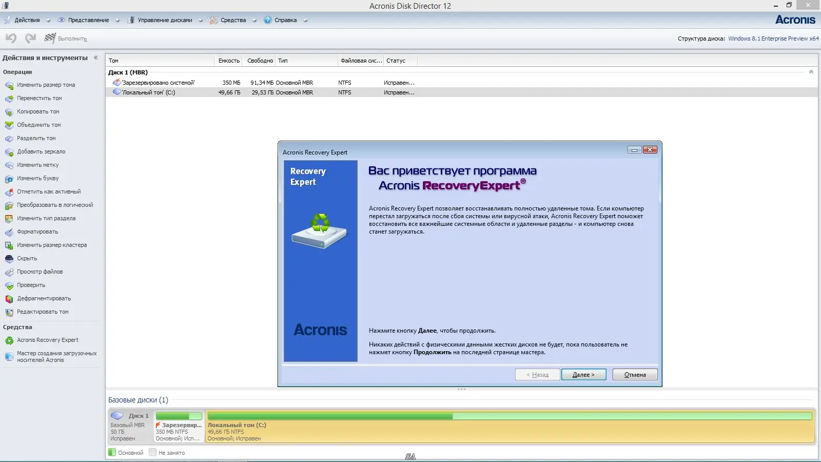 Работа с Acronis Disk Director