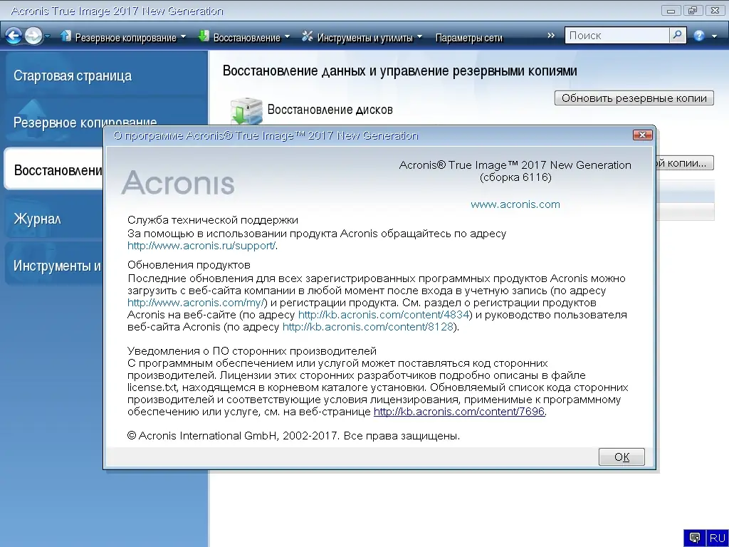 - Возможность восстановления системы целиком, включая операционную среду и пользовательские настройки