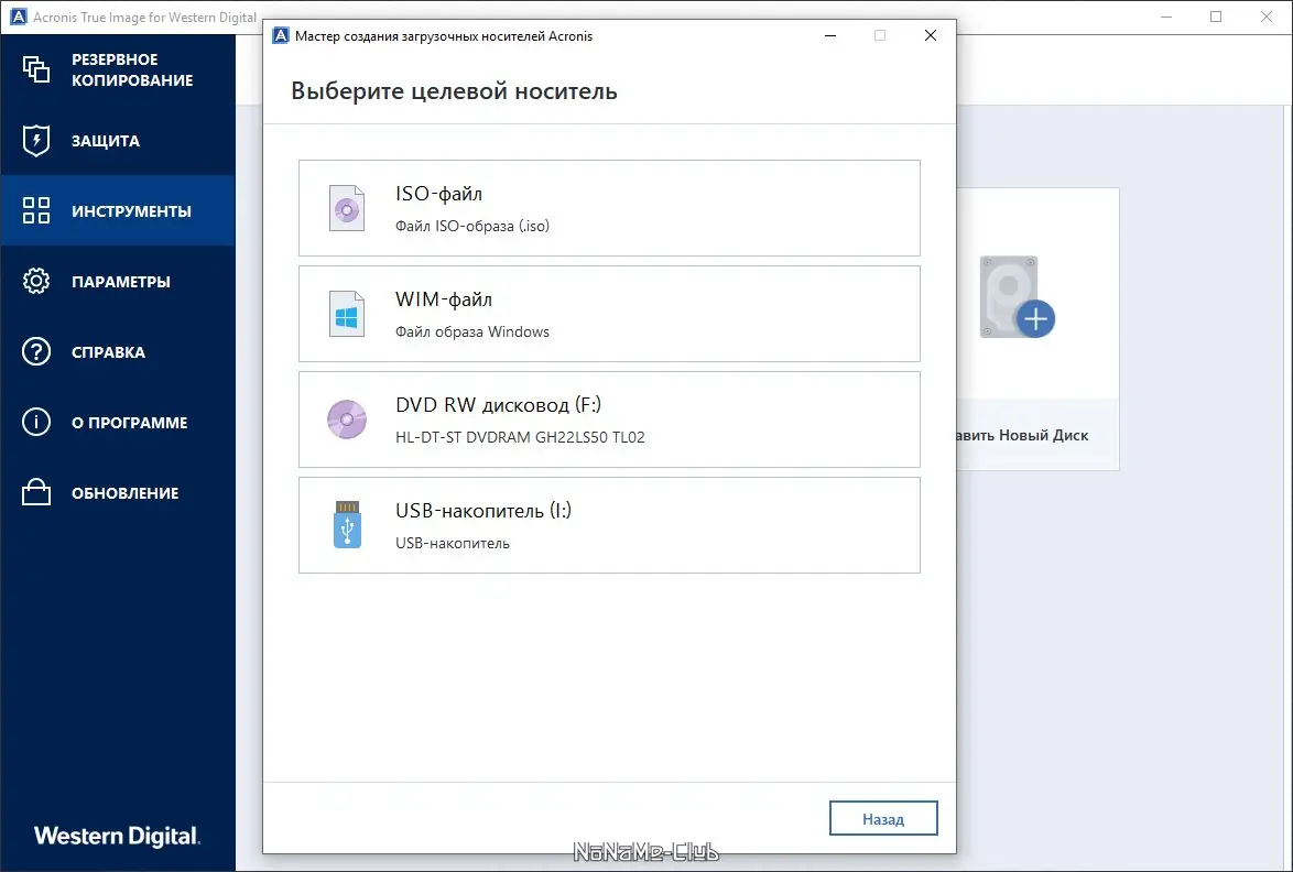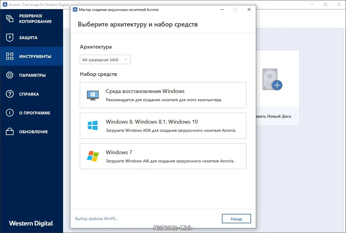 Работа с Acronis True Image WD Edition