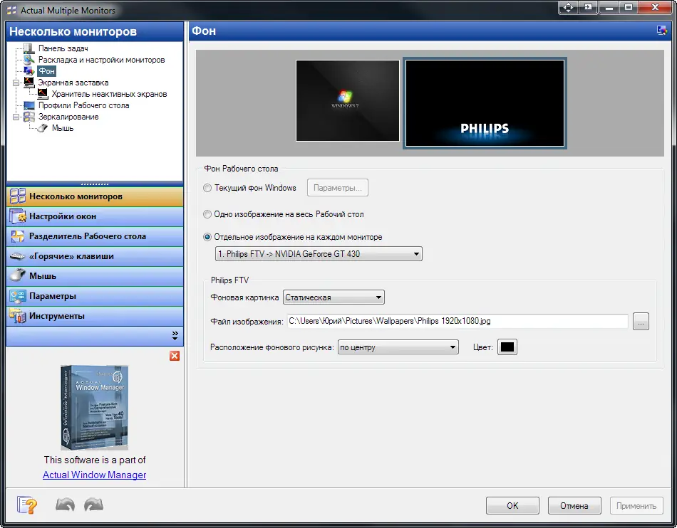 Actual Multiple Monitors — это мощная утилита для пользователей, работающих с несколькими мониторами под управлением Windows. Программа значительно расширяет стандартные возможности операционной системы, добавляя полноценную поддержку второго и последующих экранов. Она позволяет настроить панель задач, экранную заставку, фон рабочего стола и управление окнами на каждом дисплее, делая работу более удобной и продуктивной. Благодаря продуманной архитектуре и большому количеству функций, решение подходит как для домашнего, так и для профессионального использования.