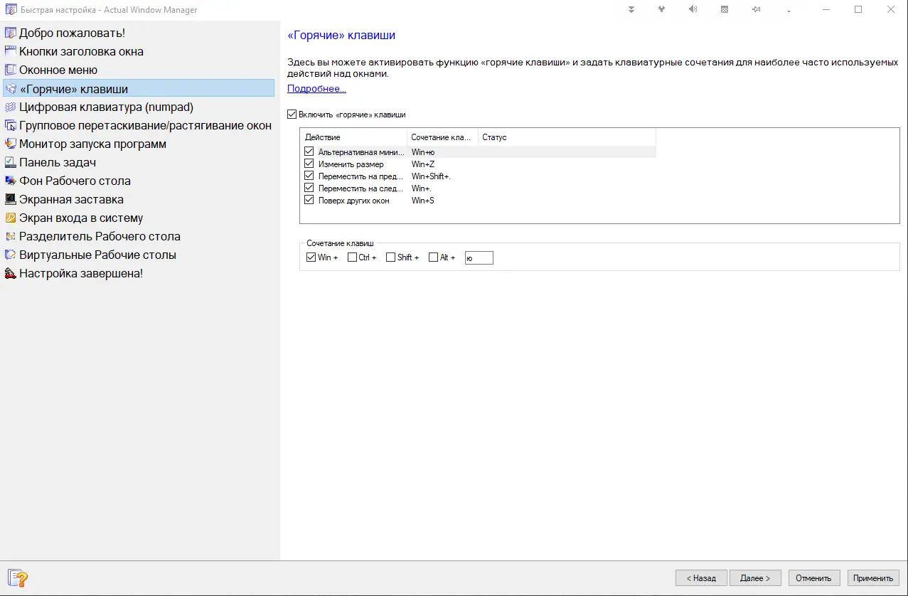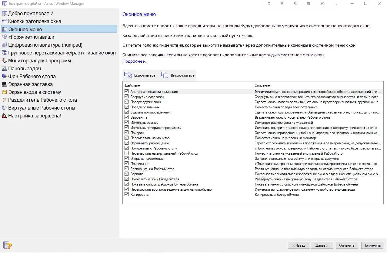 Работа с Actual Window Manager