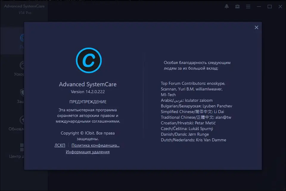 Работа с Advanced SystemCare
