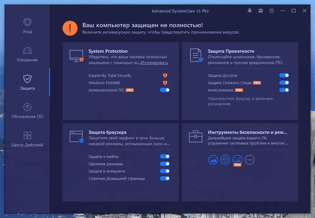 Advanced SystemCare — комплексная утилита для оптимизации и обслуживания операционной системы Windows, обеспечивающая высокую производительность, защиту от угроз и стабильность работы компьютера. Программа сочетает в себе мощные инструменты очистки, настройки автозагрузки, защиты в реальном времени и ускорения системы, что делает её универсальным решением для пользователей любого уровня.