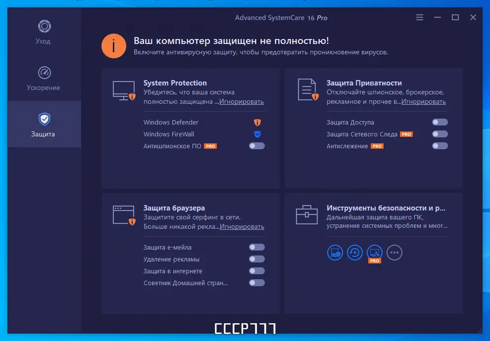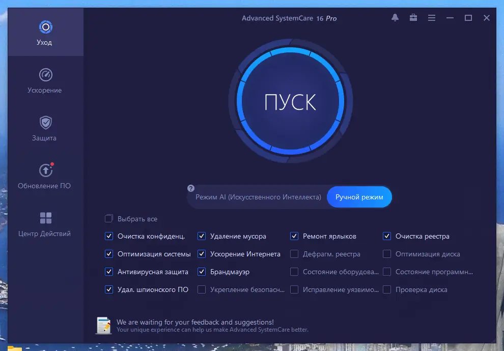 Работа с Advanced SystemCare