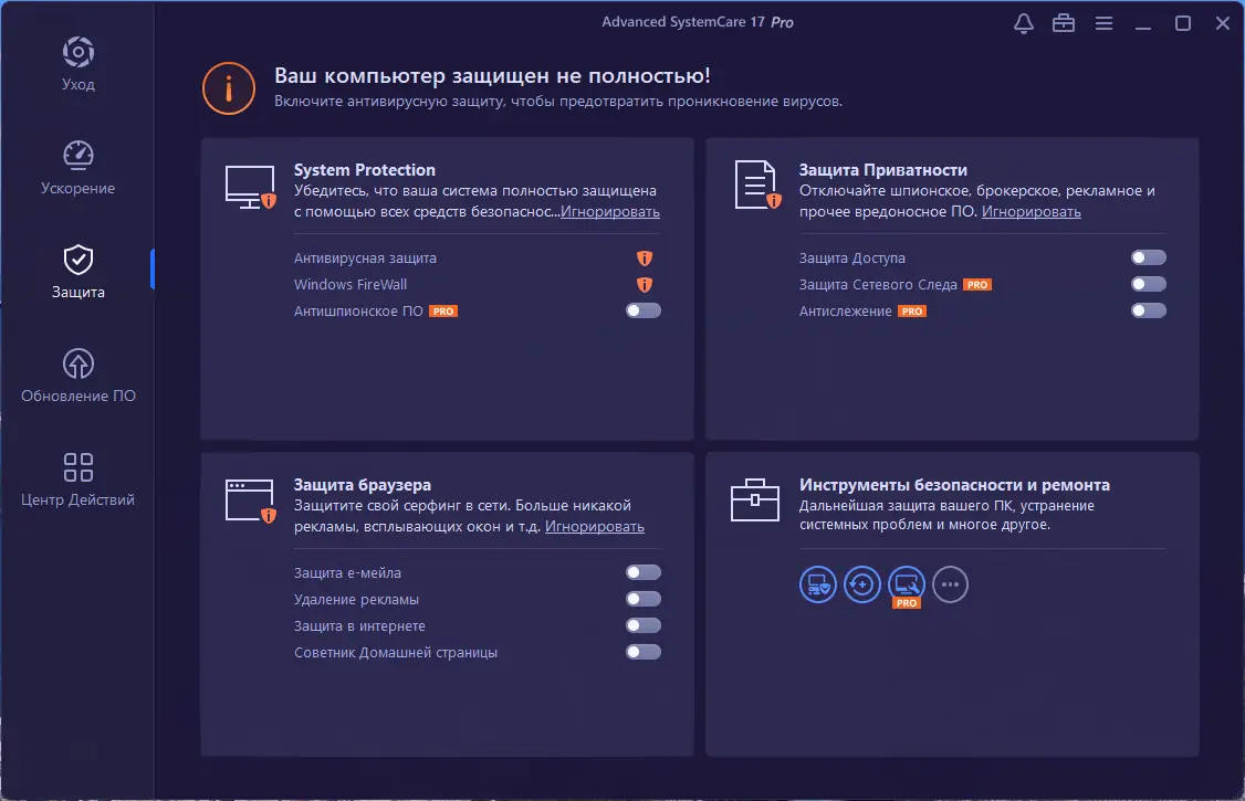 Advanced SystemCare — комплексное решение для оптимизации операционной системы, обеспечивающее высокую производительность, безопасность и стабильность компьютера. Программа автоматизирует процессы очистки, настройки реестра, управления автозагрузкой и защиты от угроз. Благодаря интеллектуальным алгоритмам и широкому набору инструментов, она подходит как для новичков, так и для опытных пользователей.