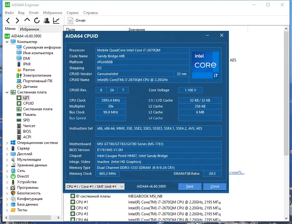 - Предоставляет детальную информацию о центральном процессоре и материнской плате, включая архитектуру, кэш-память и режимы энергопотребления.