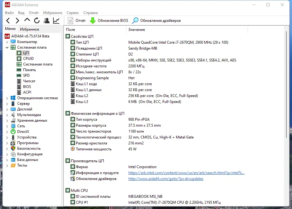 - Отображение низкоуровневой информации о процессоре и материнской плате, включая поддерживаемые инструкции и режимы питания