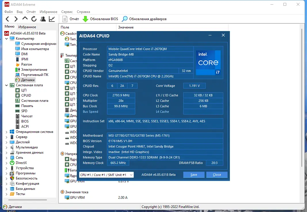 - Сбор подробной информации о процессоре, материнской плате и чипсете с использованием низкоуровневых запросов.