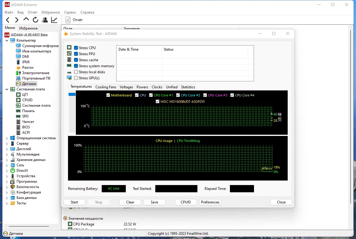 Интерфейс AIDA64 организован в виде древовидного меню, где каждый раздел соответствует определённой подсистеме компьютера. Для запуска теста стабильности или производительности достаточно перейти в соответствующий модуль и выбрать нужный сценарий. Программа отображает текущие показатели температуры, загрузки процессора, использования памяти и напряжения в реальном времени, что особенно полезно при разгоне или проверке системы под нагрузкой. Результаты тестов можно экспортировать в различные форматы, включая HTML, CSV и PDF, а также отправить по электронной почте. Мастер отчетов позволяет настроить содержание итогового документа под конкретные задачи.