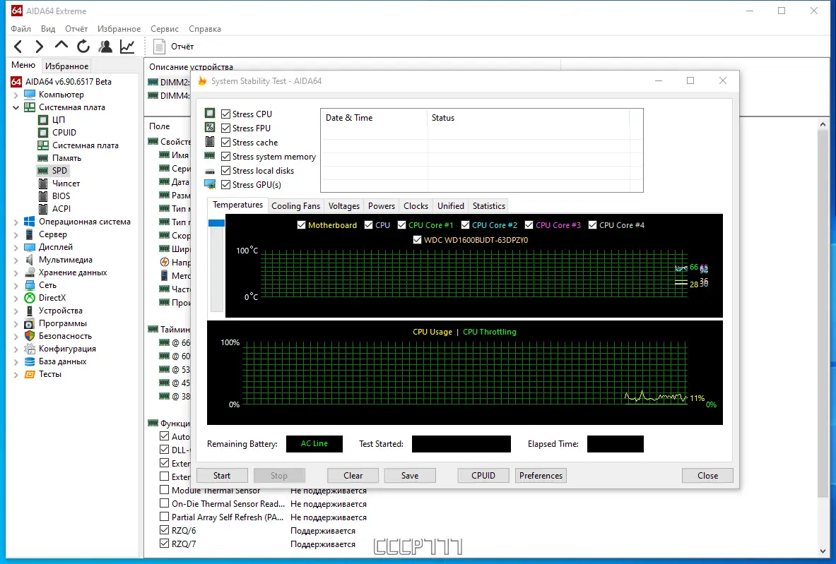 Программа AIDA64 предоставляет точную диагностику аппаратного и программного обеспечения в системах на базе Windows. Обладает расширенными возможностями тестирования, мониторинга и анализа производительности компьютера, включая модули стресс-тестов и детального отчета по компонентам.