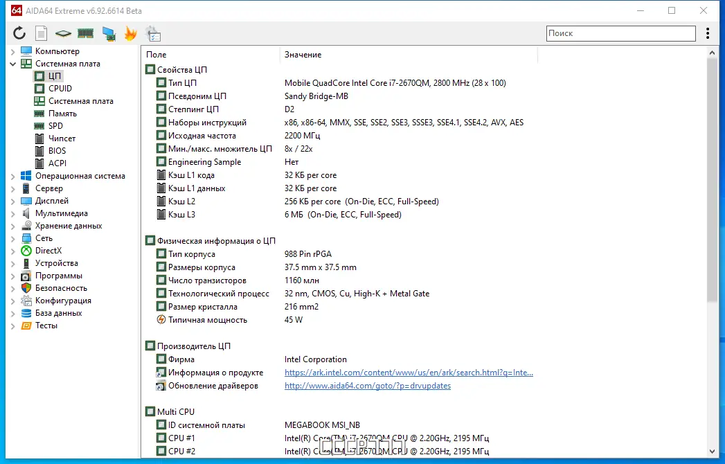- Позволяет получить точные данные о центральном процессоре, чипсете, оперативной памяти и видеокарте.