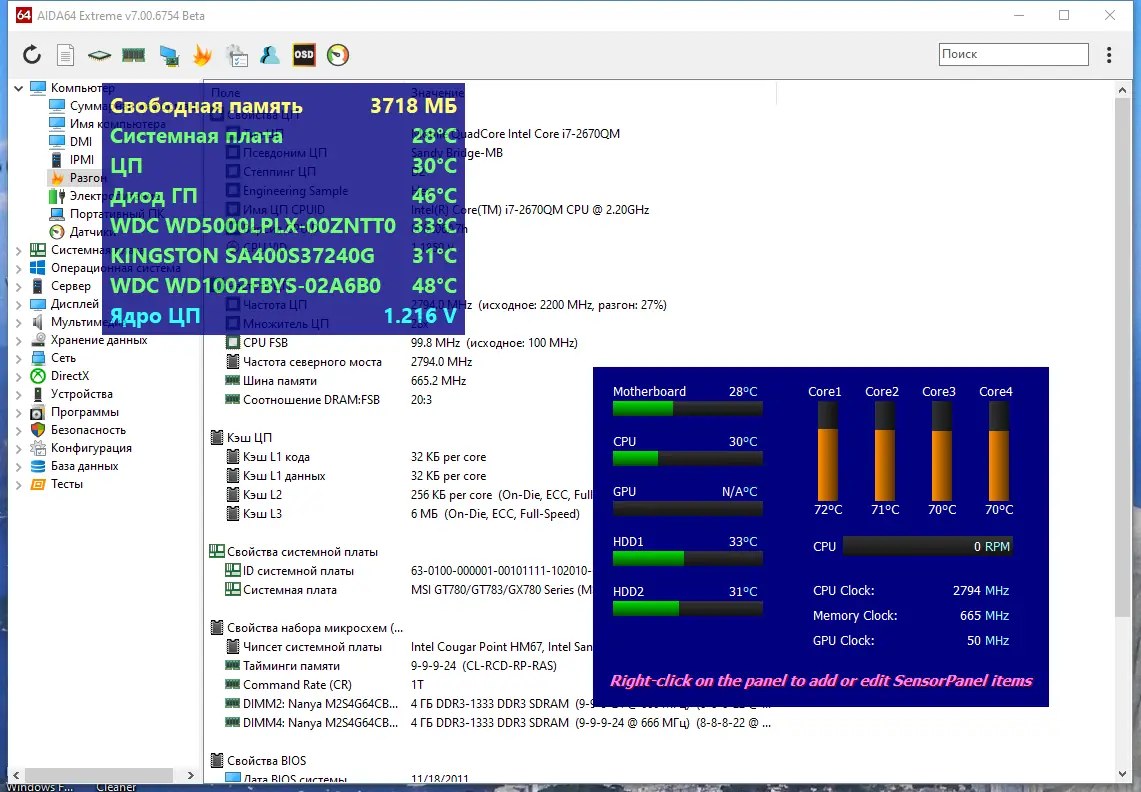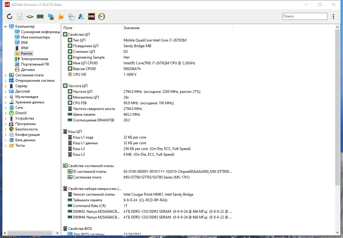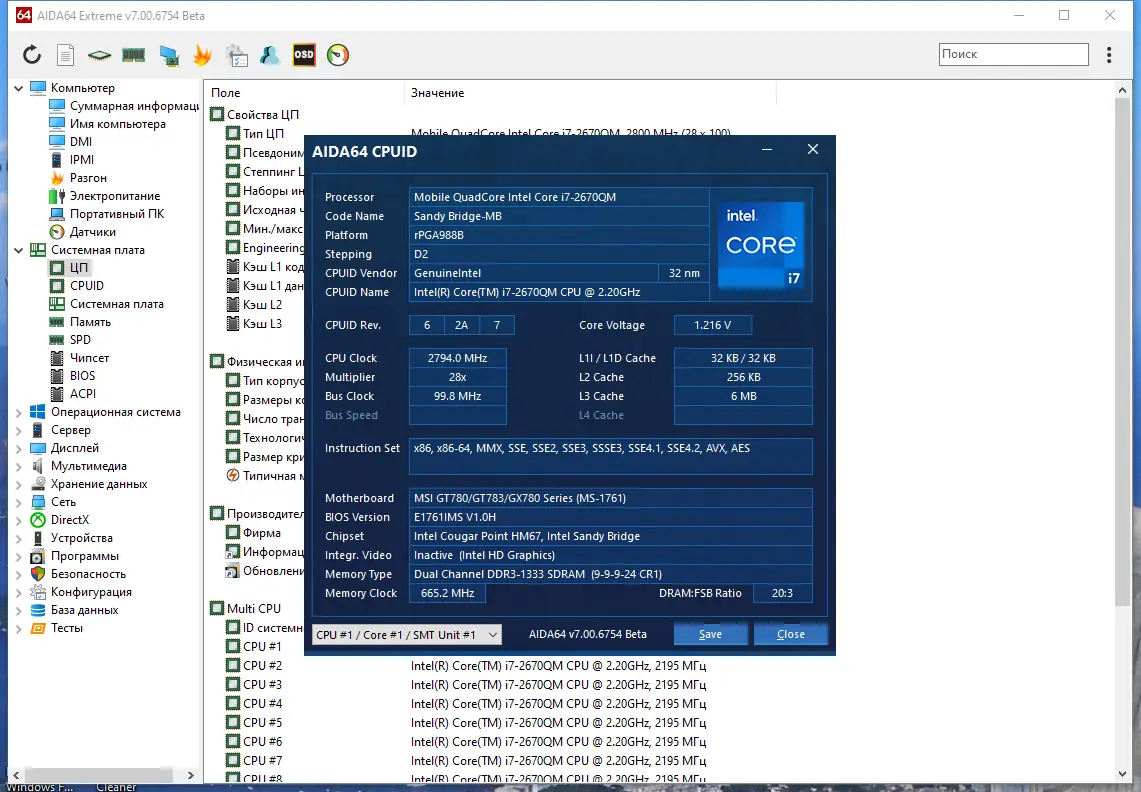 - Отображение точных данных о процессоре, материнской плате, чипсете и BIOS