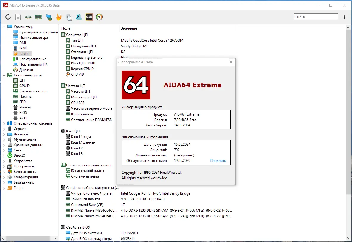 После запуска AIDA64 пользователь получает доступ к древовидному меню, в котором систематизирована вся информация о компонентах системы. Каждый раздел предоставляет детальные сведения: от модели процессора и его техпроцесса до версий BIOS, драйверов и сетевых настроек. Встроенные тесты производительности позволяют оценить скорость работы CPU, арифметических блоков, памяти и дисковых подсистем. Модуль мониторинга отображает текущие показатели датчиков, а мастер отчётов помогает экспортировать данные в удобном формате. Результаты можно сохранить, распечатать или отправить по электронной почте для дальнейшего анализа. Благодаря поддержке широкого спектра оборудования, включая новейшие процессоры Intel и AMD, а также видеокарты NVIDIA и Intel Arc, программа остаётся актуальной в условиях быстро меняющейся технологической среды. Версия 7.20.6835 beta добавила поддержку Windows 11 24H2, новых CPU и GPU, а также исправила ошибки определения тактовых частот и множителей.