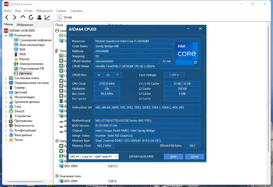 - Предоставляет детальную информацию о центральном процессоре, материнской плате и чипсете с использованием низкоуровневых запросов.