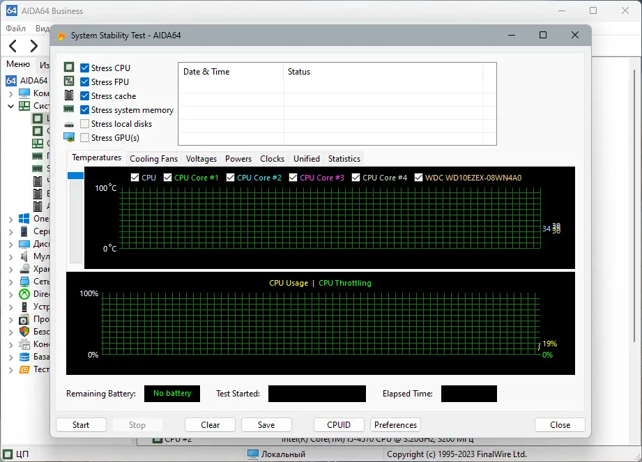 После запуска приложения пользователь видит древовидное меню, в котором отображаются все аппаратные и программные компоненты. Каждый раздел можно раскрыть для просмотра детализированных параметров. Для выполнения теста стабильности используется модуль «Системная стабильность», который нагружает процессор, память и видеоядро. Результаты отображаются в графиках, а показатели температуры и нагрузки обновляются в реальном времени. Для создания отчёта применяется встроенный мастер, позволяющий экспортировать данные в HTML, CSV или TXT.