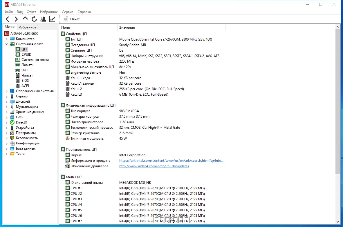 - Отображение точных данных о процессоре, материнской плате и чипсете с использованием низкоуровневых запросов к BIOS и UEFI