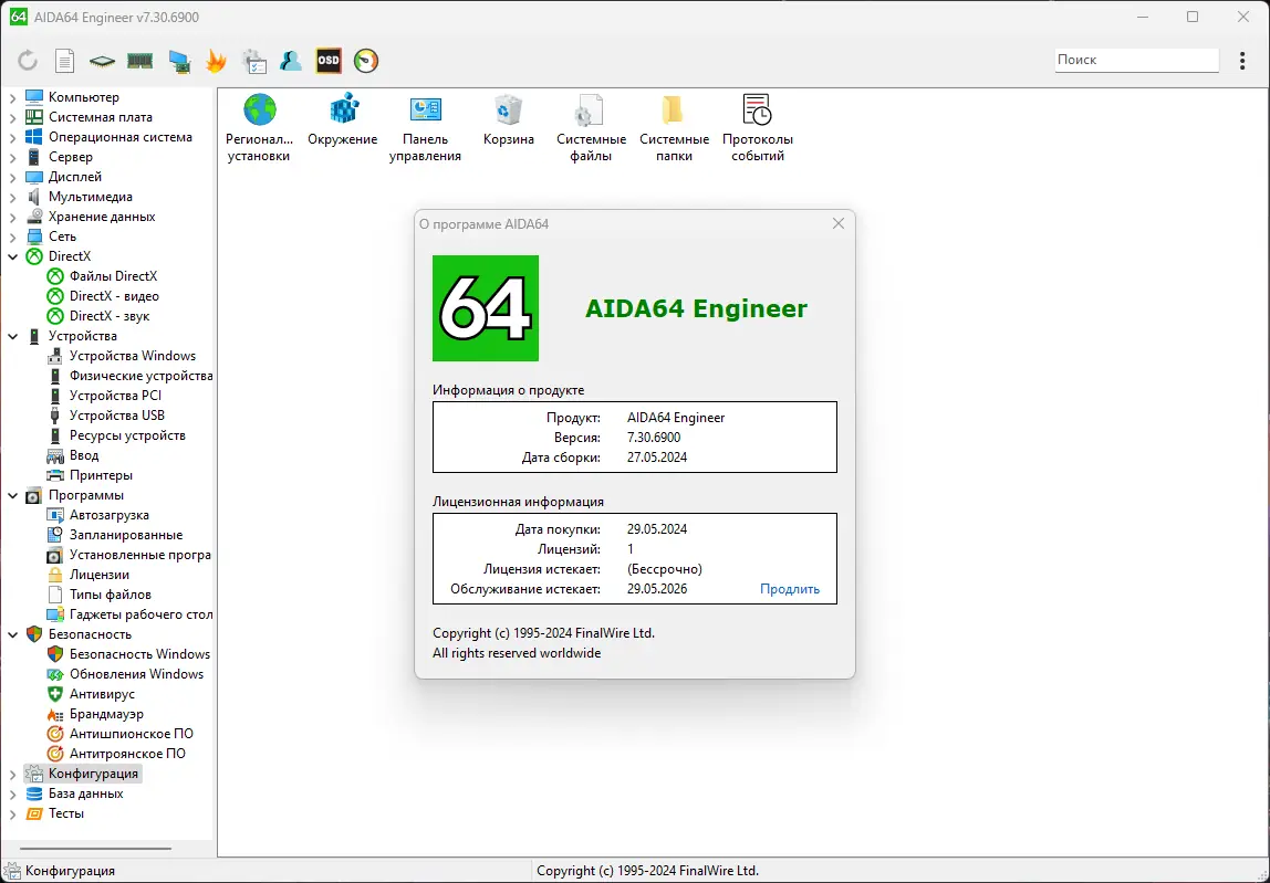 AIDA64 — это универсальная утилита для глубокого анализа аппаратного и программного обеспечения компьютера под Windows. Программа предоставляет исчерпывающие данные о компонентах системы, включая процессор, видеокарту, память, диски и периферийные устройства, а также позволяет проводить тестирование производительности и стабильности. С её помощью можно выявлять несоответствия в конфигурации, контролировать температуру и нагрузку, а также генерировать детальные отчёты для аудита или диагностики.