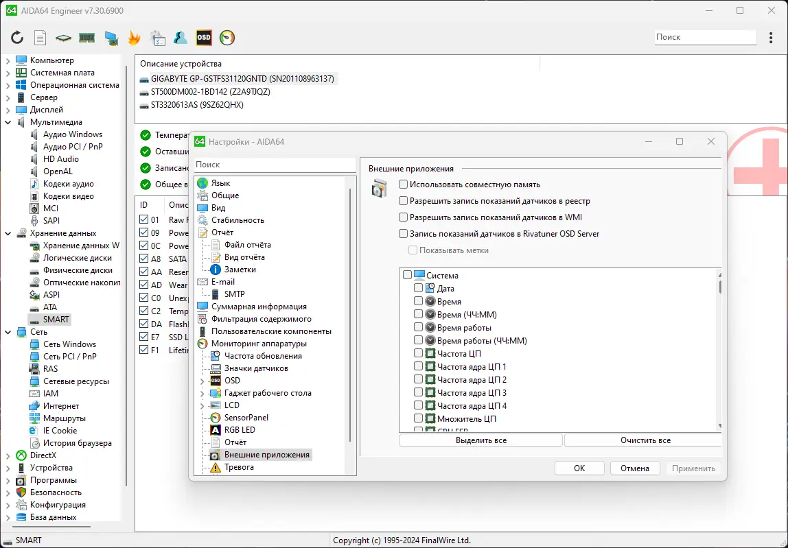 - Анализ всех устройств хранения с отображением SMART-показателей