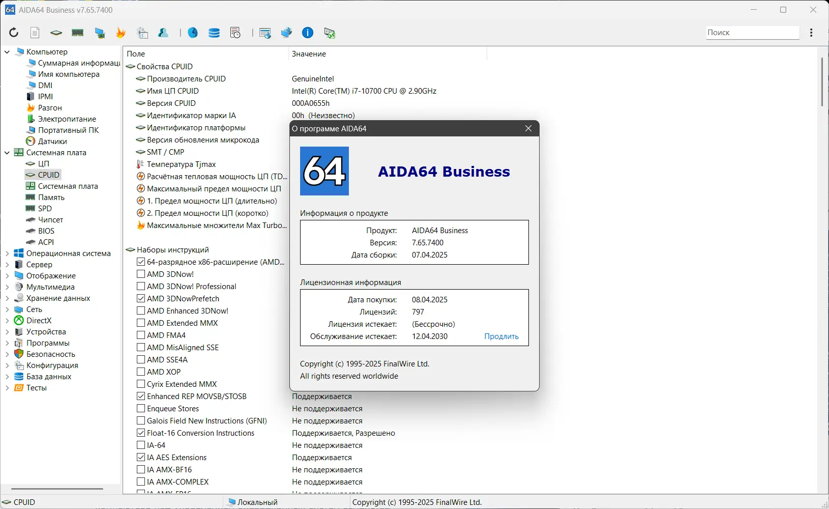AIDA64 — это многофункциональная утилита для диагностики и тестирования аппаратного и программного обеспечения в системах на базе Windows. Программа предоставляет исчерпывающие сведения о компонентах ПК, включая процессор, материнскую плату, видеокарту, память и периферийные устройства. Она позволяет проводить стресс-тесты, оценивать производительность системы и выявлять возможные проблемы совместимости или настройки.