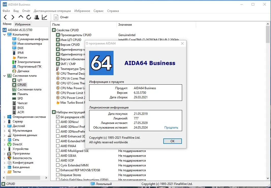 AIDA64 — это профессиональный инструмент для детального анализа аппаратного и программного обеспечения, диагностики системы и тестирования производительности компонентов персонального компьютера под управлением операционных систем семейства Windows. Программа предоставляет исчерпывающие данные о конфигурации ПК, включая центральный процессор, видеокарту, оперативную память, устройства хранения и периферийные устройства. С её помощью можно провести стресс-тест системы, оценить стабильность и выявить возможные узкие места в производительности.