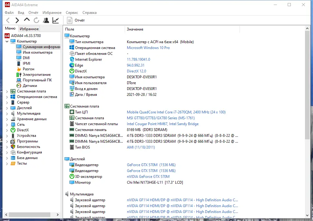 Работа с AIDA64