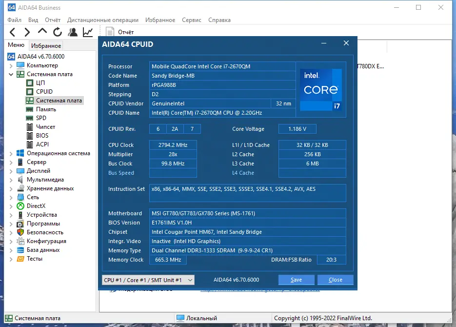 - Точная низкоуровневая информация о центральном процессоре и чипсете