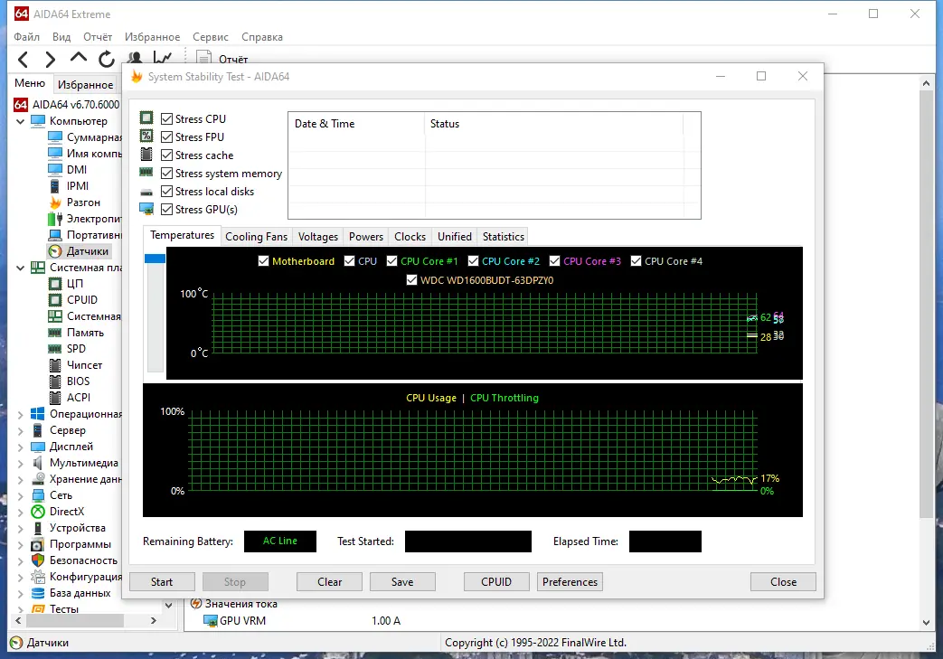 - Включает модуль тестирования стабильности системы, позволяющий выявить перегрев или сбои при высоких нагрузках.