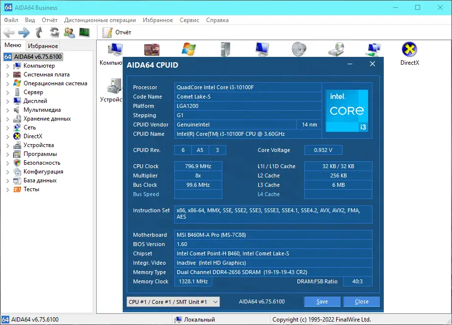 - Позволяет получить точные данные о процессоре, чипсете, оперативной памяти и BIOS
