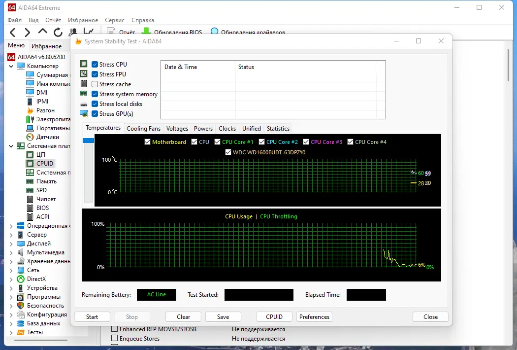 - Проведение стресс-тестов для проверки стабильности центрального процессора, оперативной памяти и видеоподсистемы.