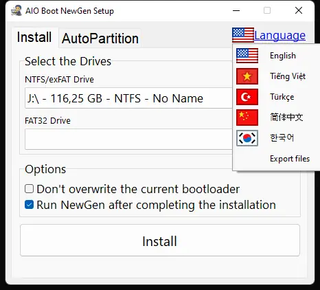 AIO Boot NewGen — это программное обеспечение для создания мультизагрузочных USB-накопителей с поддержкой Windows, Linux, macOS и других операционных систем. Утилита поддерживает UEFI и Legacy BIOS, позволяет интегрировать драйверы и настраивать загрузчики, включая GRUB2, Clover и Refind. Подходит как для профессионалов, так и для начинающих пользователей.