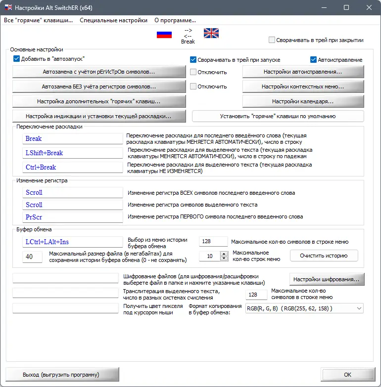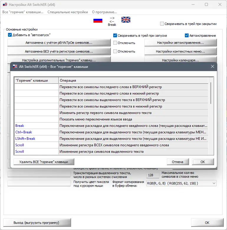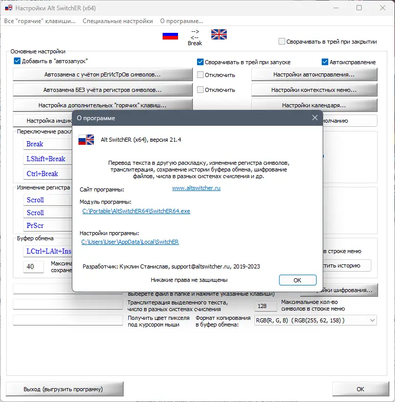 Alt Switcher — портативная утилита для автоматического исправления раскладки клавиатуры, замены сокращений, получения цвета под курсором, настройки горячих клавиш и выполнения множества дополнительных функций. Программа не требует установки, не использует интернет-соединение и не создаёт лишних записей в системе, что делает её безопасной и удобной для повседневного использования на любом компьютере.