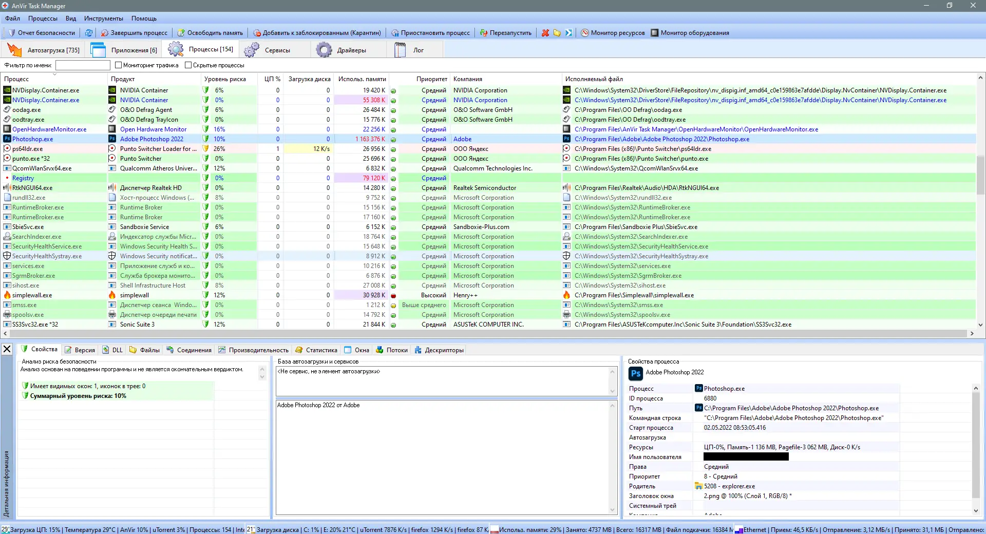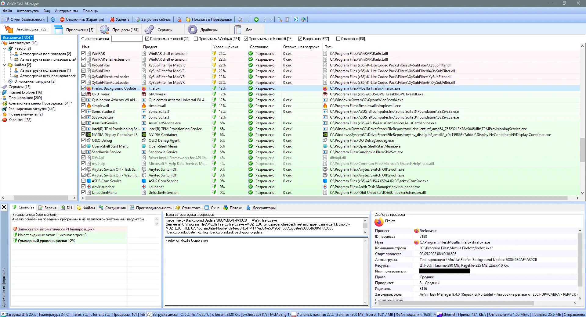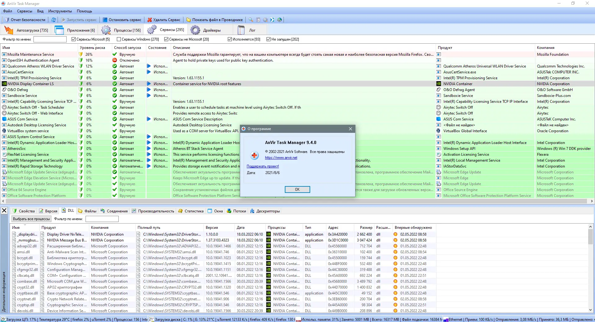 Anvir Task Manager предоставляет детальную информацию о всех аспектах работы операционной системы, включая активные процессы, службы, драйверы и сетевые подключения. Программа отображает данные в понятном интерфейсе, позволяя быстро находить узкие места в производительности и устранять их. Она особенно полезна для пользователей, стремящихся контролировать автозагрузку, отслеживать активность программ и предотвращать запуск нежелательного ПО.