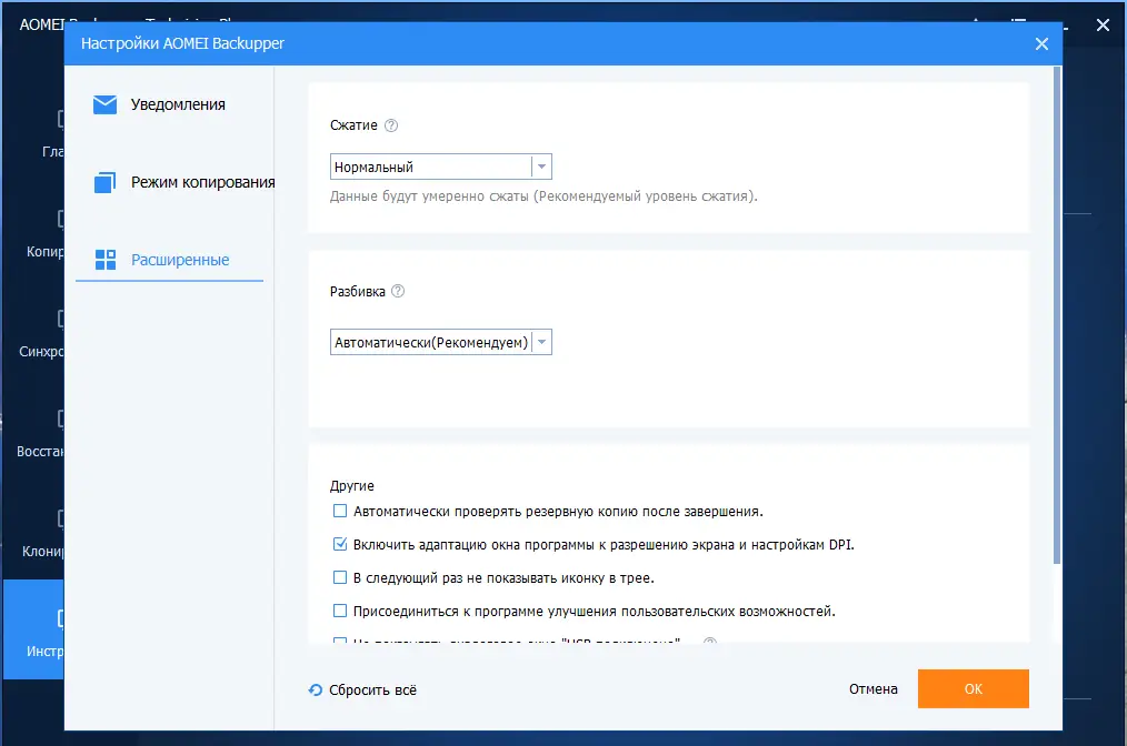 Работа с AOMEI Backupper