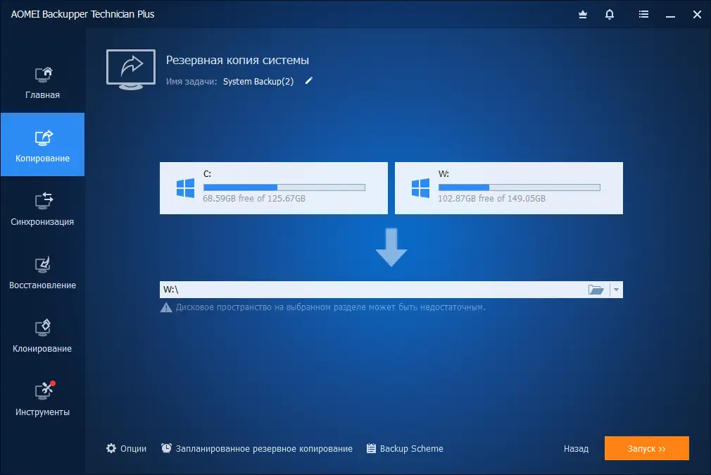 - Функция клонирования дисков и разделов для апгрейда оборудования.