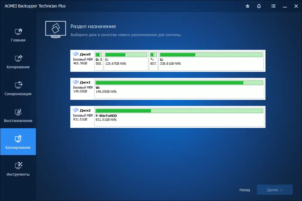 - Позволяет клонировать HDD и SSD для замены или апгрейда накопителей.