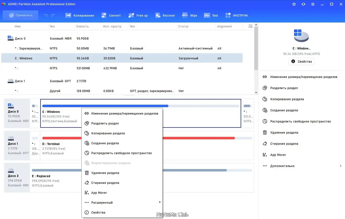Работа с AOMEI Partition Assistant