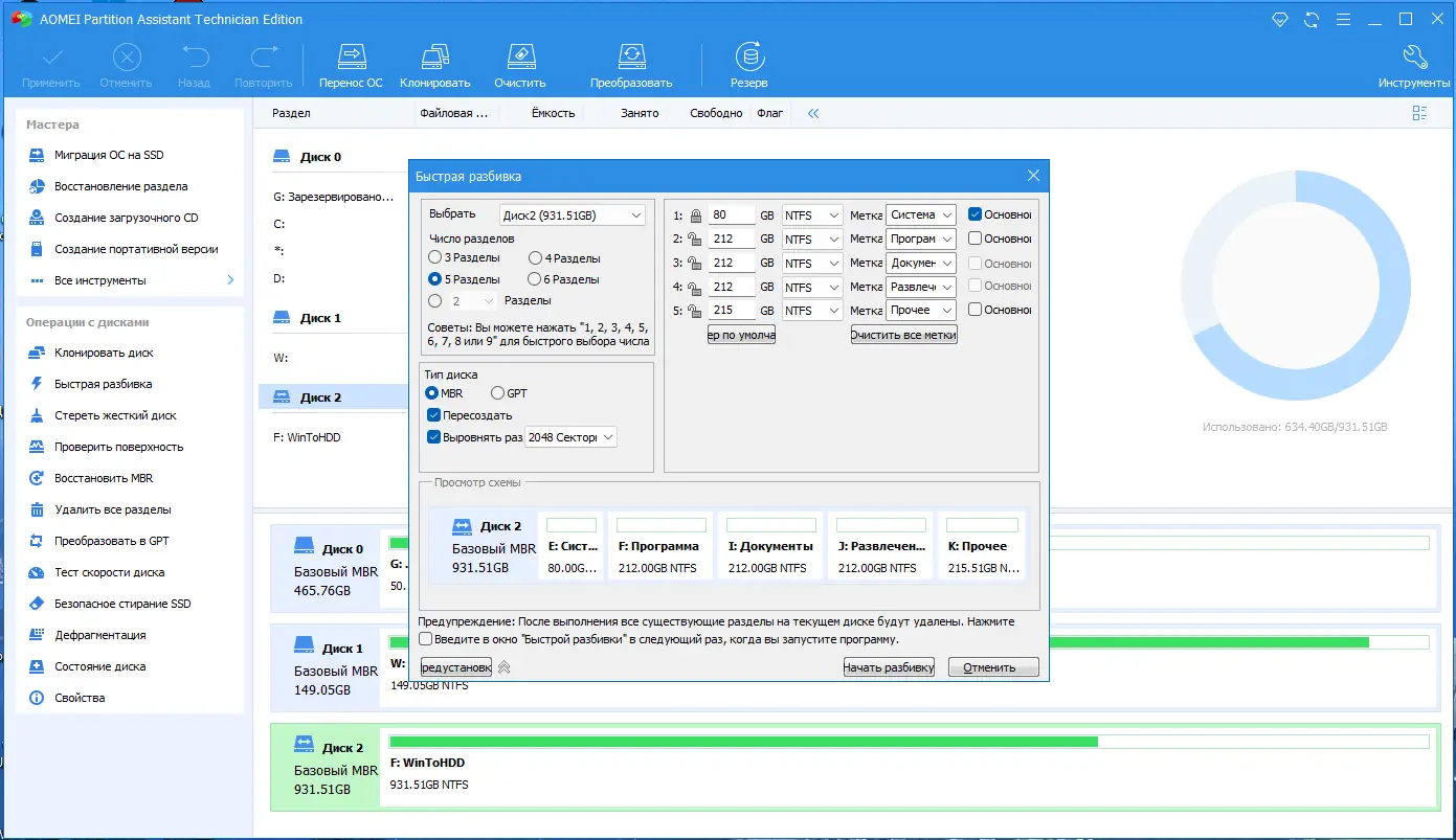 AOMEI Partition Assistant выделяется стабильностью, широким функционалом и поддержкой современных технологий хранения. Программа одинаково хорошо работает с традиционными HDD и современными SSD, поддерживая выравнивание разделов для повышения скорости. Наличие продвинутых инструментов вроде восстановления удалённых разделов, перезаписи MBR и конвертации между GPT и MBR делает её универсальным решением. Также поддерживается управление разделами Linux, что расширяет сферу применения.