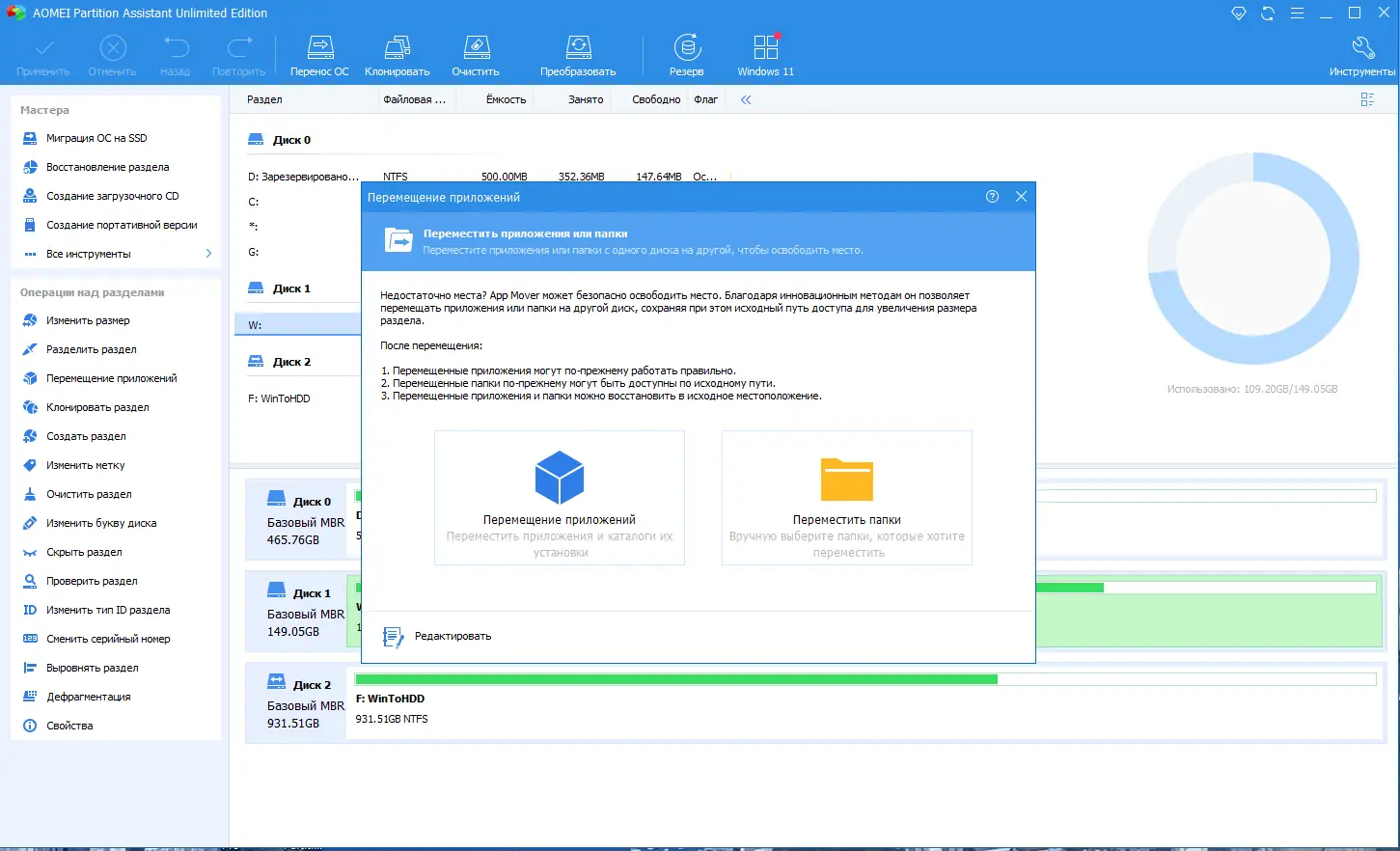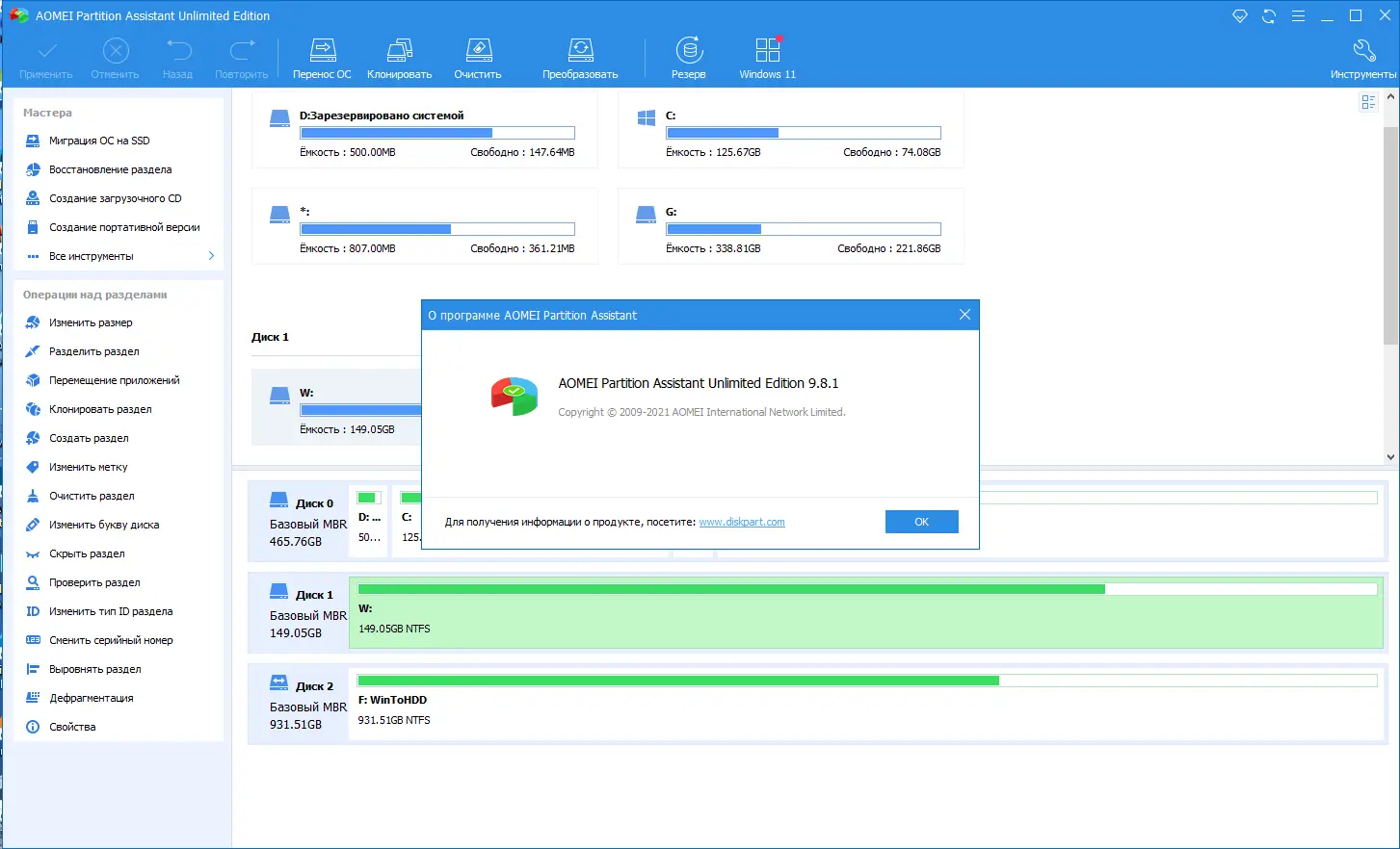 Работа с AOMEI Partition Assistant