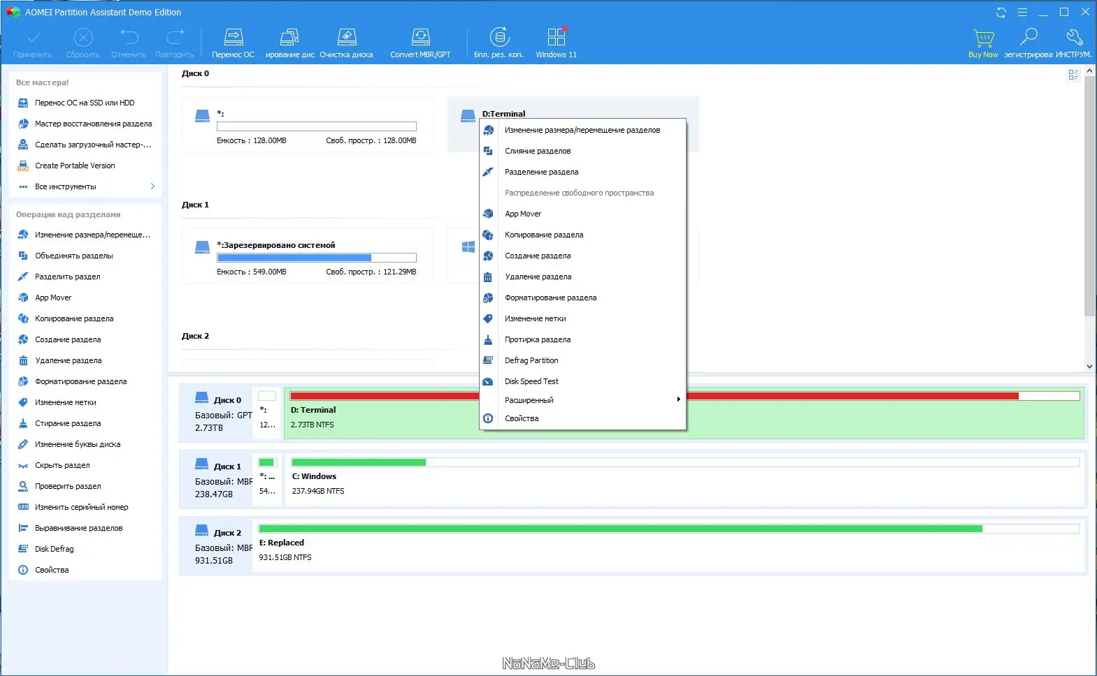 Работа с AOMEI Partition Assistant