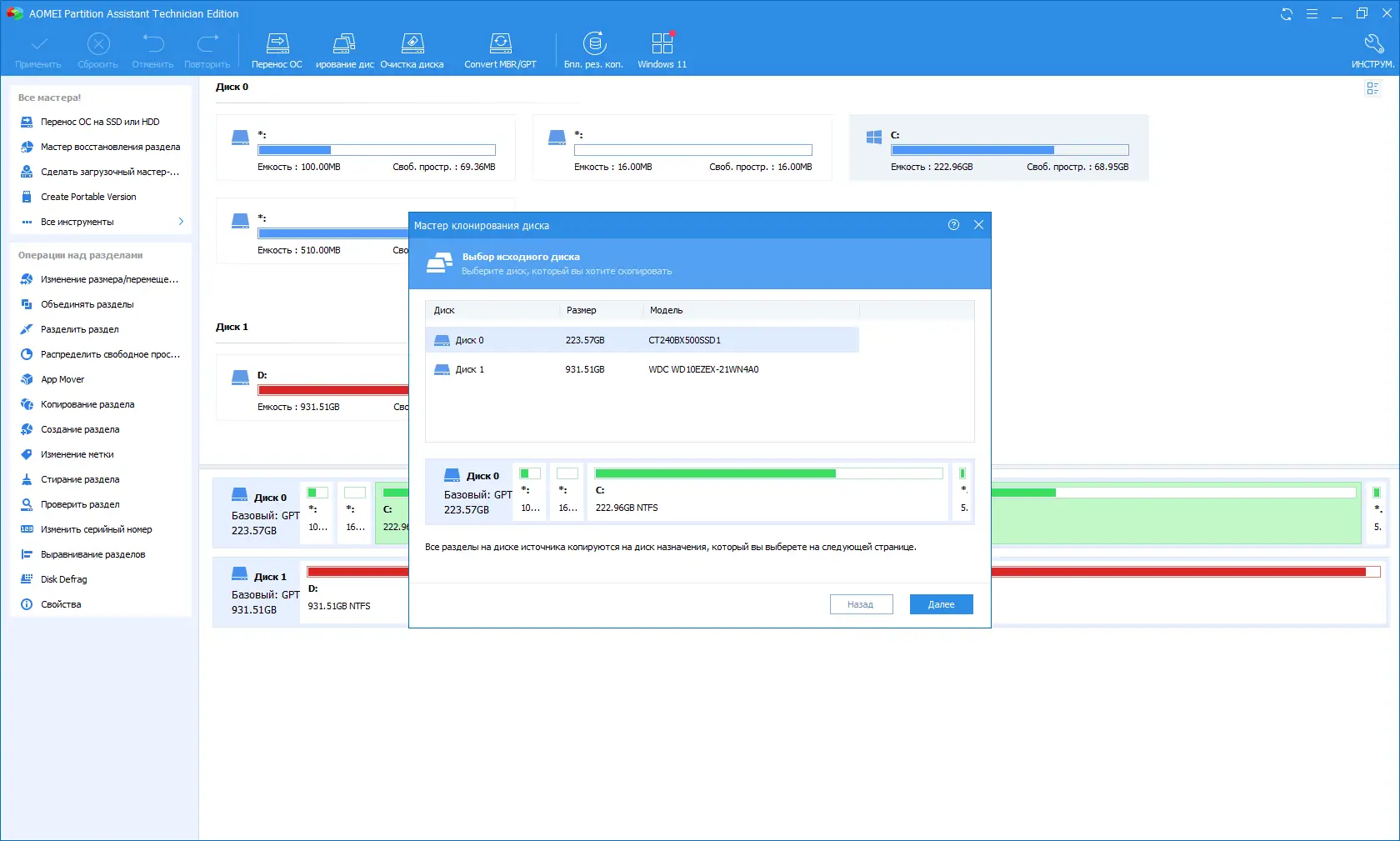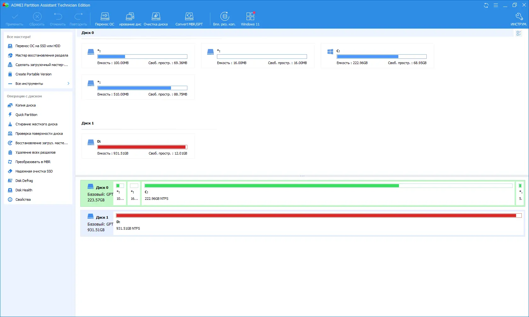 Работа с AOMEI Partition Assistant